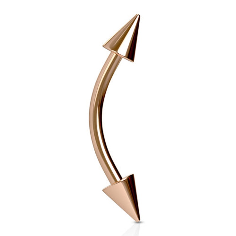 16g Spiked Rose Gold Curved Barbell 16g – 5/16″ long – 3x4mm cones Rose Gold Stainless