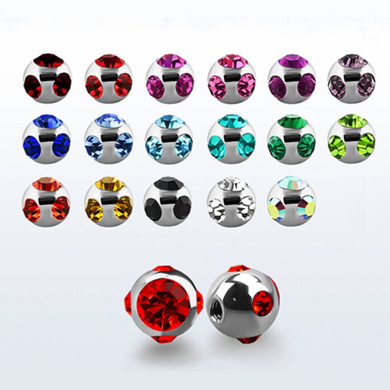 You’ll get a two pack of 316L stainless steel tiffany gem balls that fit most any 16g externally threaded barbell. Choose your size and gem color below.