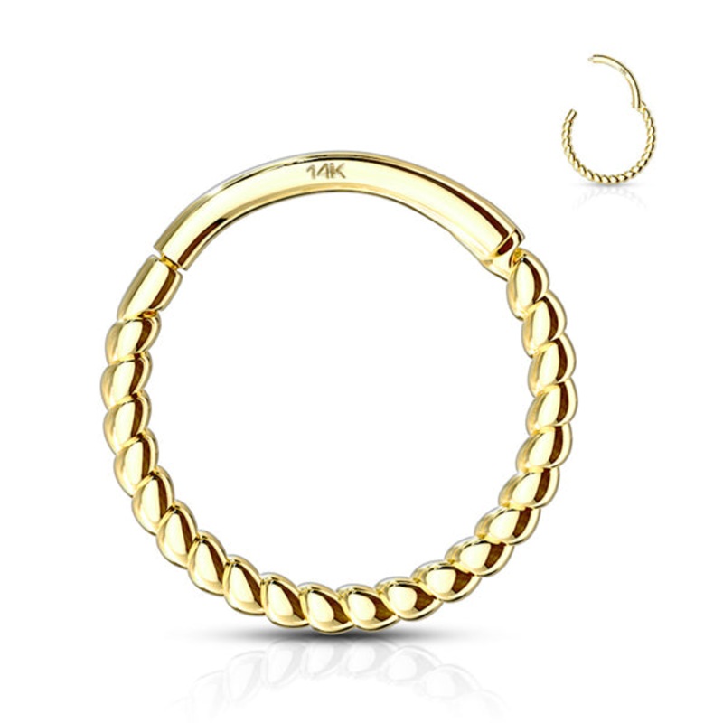 16g Twisted 14k Gold Hinged Ring 16g – 11/32″ diameter (9mm) Yellow 14k Gold