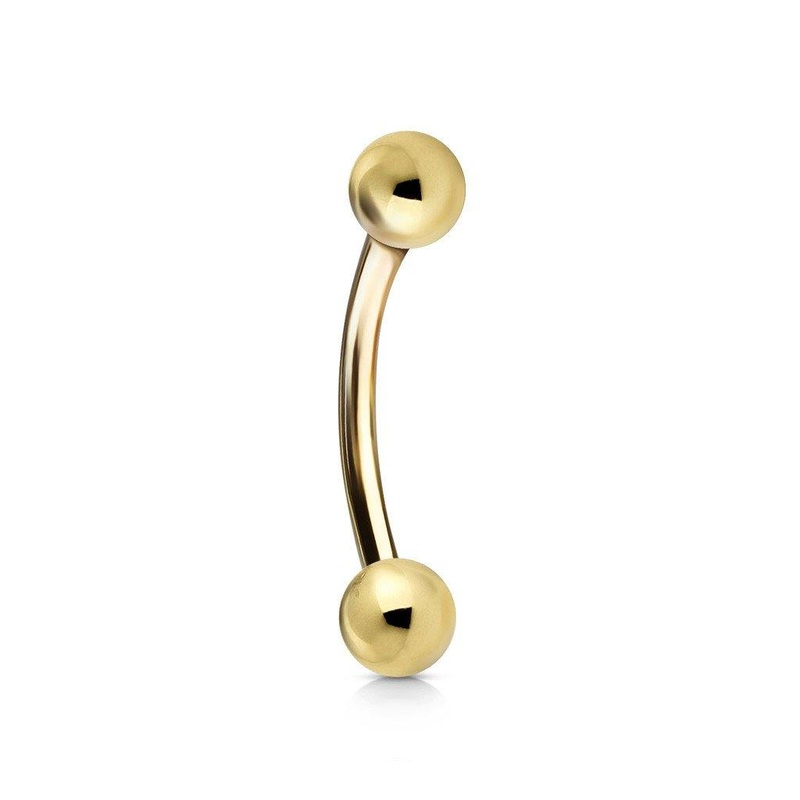 16g Yellow 14k Gold Curved Barbell 16g – 1/4″ long (6mm) – 3mm balls Yellow 14k Gold