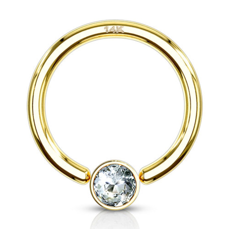 16g Yellow 14k Gold CZ Captive Bead Ring 16g – 5/16″ diameter (8mm) – 3mm bead Clear Yellow 14k Gold