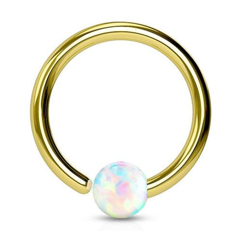 18g Gold Fixed Opal Bead Ring 18g – 5/16″ diameter (8mm) White Gold Stainless