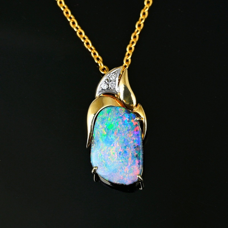 18K Gold Diamond Australian Bolder Opal Pendant