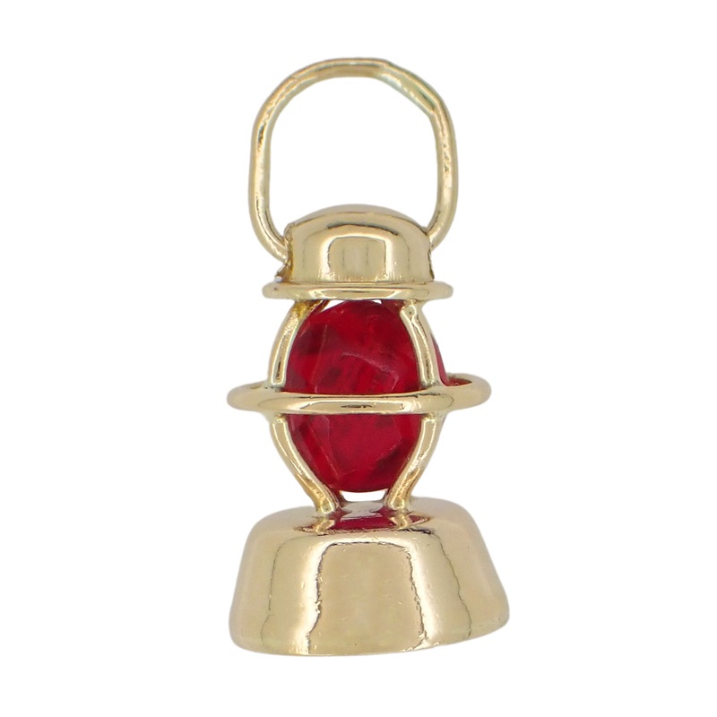 1950’s Vintage Red Lens Railroad Lantern Charm in 14 Karat Yellow Gold
