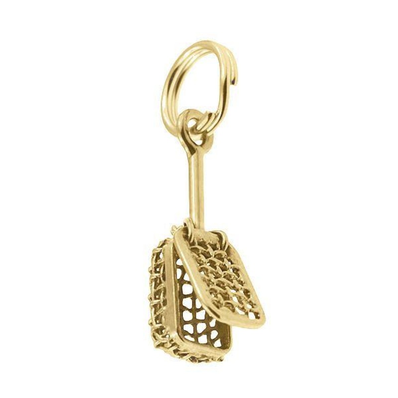 Circa 1950's, this cute little vintage fryer basket charm is a fun fine jewelry gift for your favorite chef! Crafted in 14K yellow gold, this high polish three dimensional basket charm measures 5/8 inch long by 3/16 inch wide and features a lid that opens