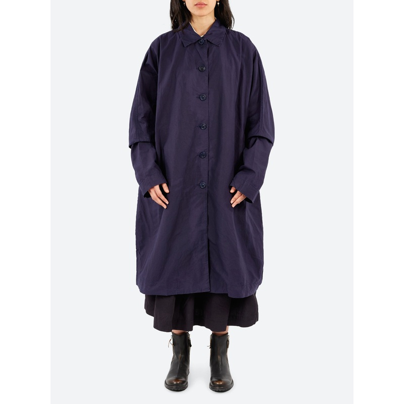 A timeless wardrobe staple from CASEY/CASEY, this long coat in Teccy fabric is designed with dropped shoulder seams for a relaxed, effortless silhouette. The coat features practical slash pockets and is fastened with durable corozo buttons. Its minimalist design combines both style and functionality, making it a versatile addition to any wardrobe. Ideal for layering, this coat offers comfort and sophistication in equal measure.