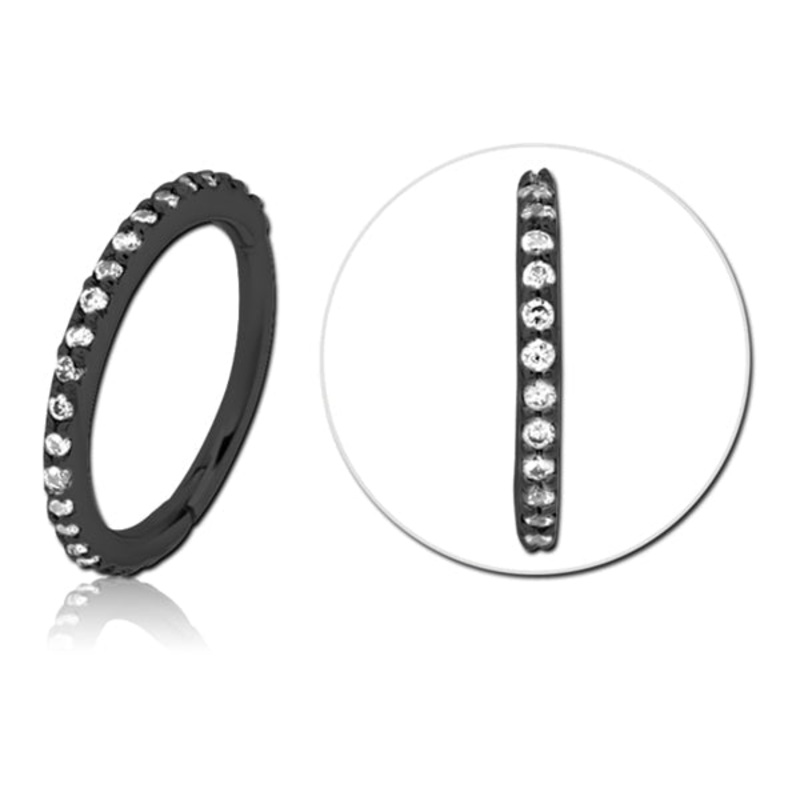 20g CZ Black Hinged Segment Ring 20g – 1/4″ diameter (6mm) Clear Black Stainless