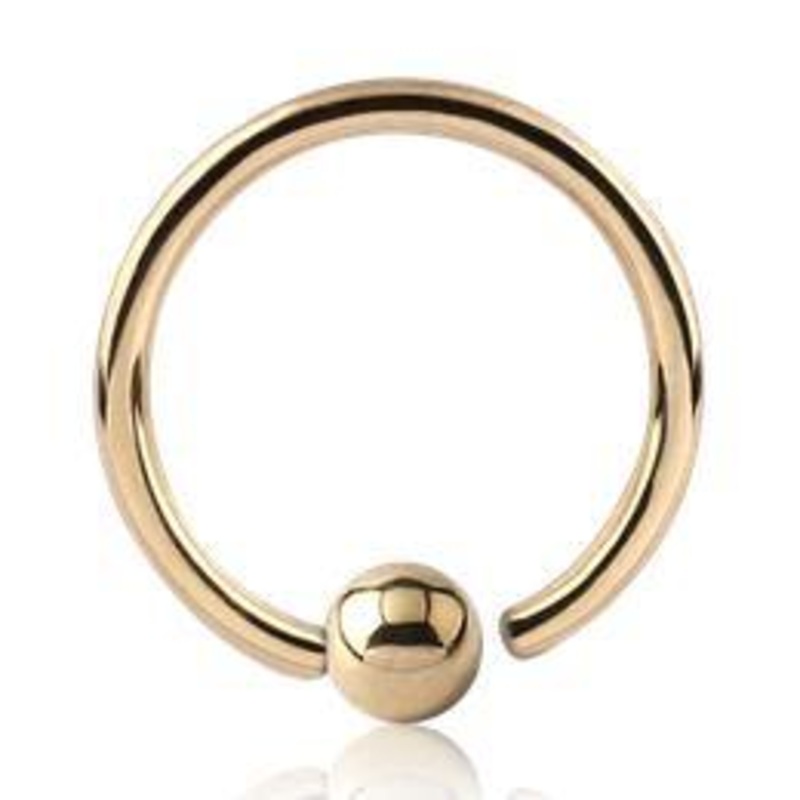 The 20 gauge fixed bead ring is made from gold PVD coated 316L stainless steel. These have the appearance of a regular captive bead ring except the ball has been permanently welded to one end of the ring. If you're unsure how to open and close fixed bead r