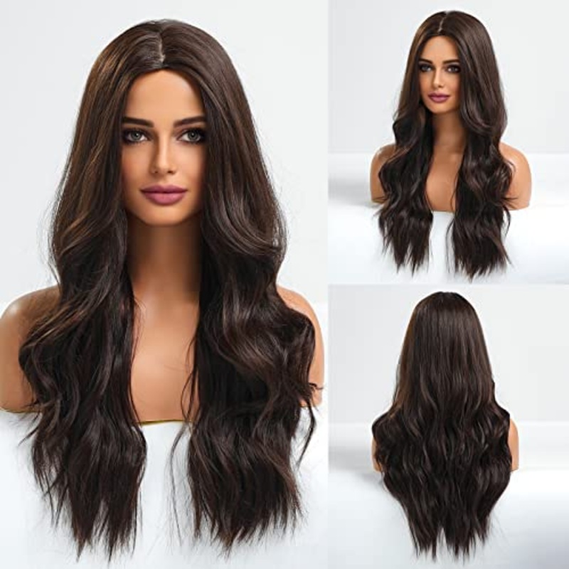 Wavy Long Brown Middle Part Heat Resistant Wighigh-quality heat-resistant synthetic fiberYou can use curling irons, please keep the temperature below 160C (320F).. The simulated scalp makes your hairline look more naturalaverage size, between 21.5 and 22.5