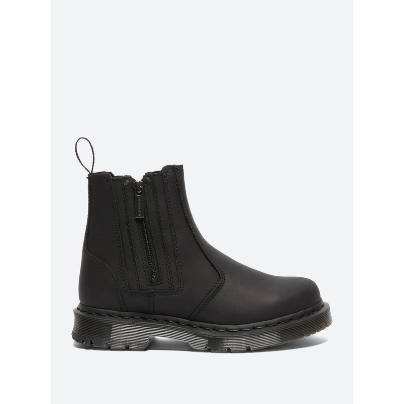 The 2976 Chelsea boot is back in new Farrier leather. Lined with WarmWair faux fur in contrast cream with a matching faux fur sock for added warmth and comfort in harsh conditions. Finished with Dr. Martens signature yellow welt stitching and a scripted AirWair heel loop.