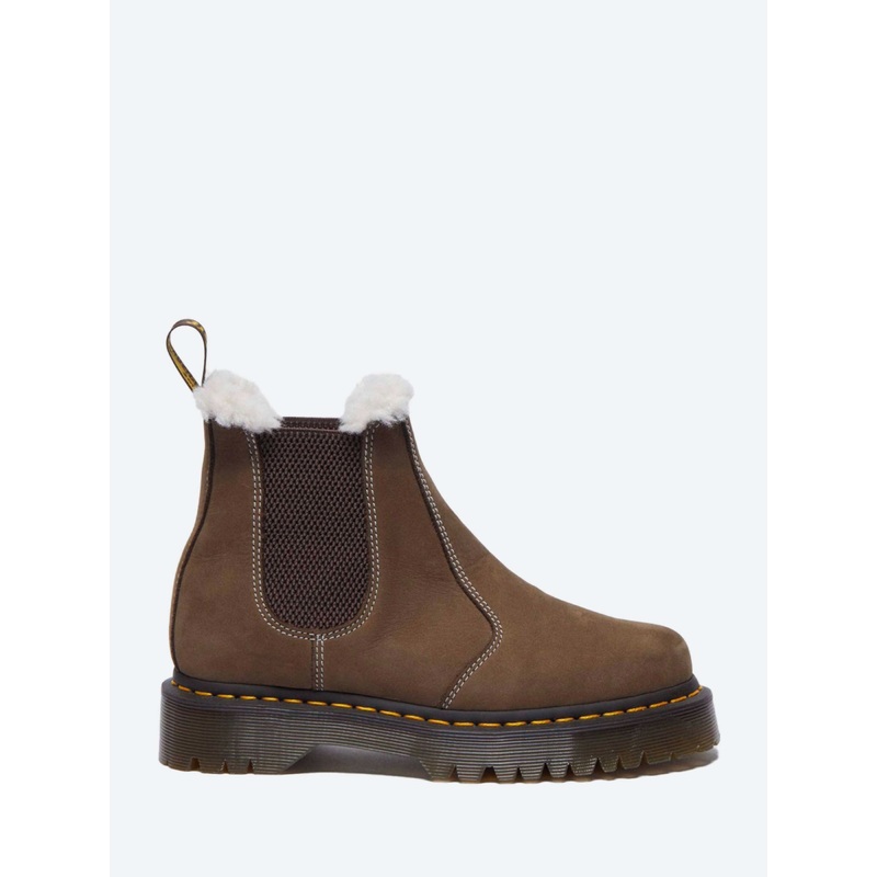 This season, soft leather and faux fur collide on Dr. Martens' rugged Bex sole. Hiker-inspired with DMs DNA, theyre warm, hardwearing and winter-resistant. Built from Buttersoft leather in a tonal palette, this 2976 Chelsea boot is fitted with antique gold