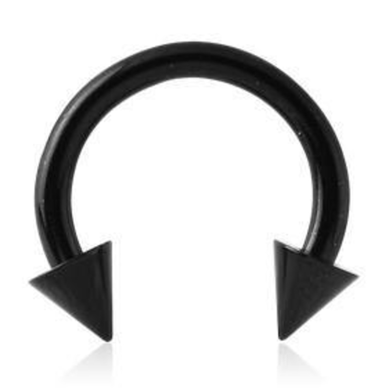 The 2 gauge circular barbell is made from black PVD coated 316L stainless steel with external threading. Both cone ends are removable.