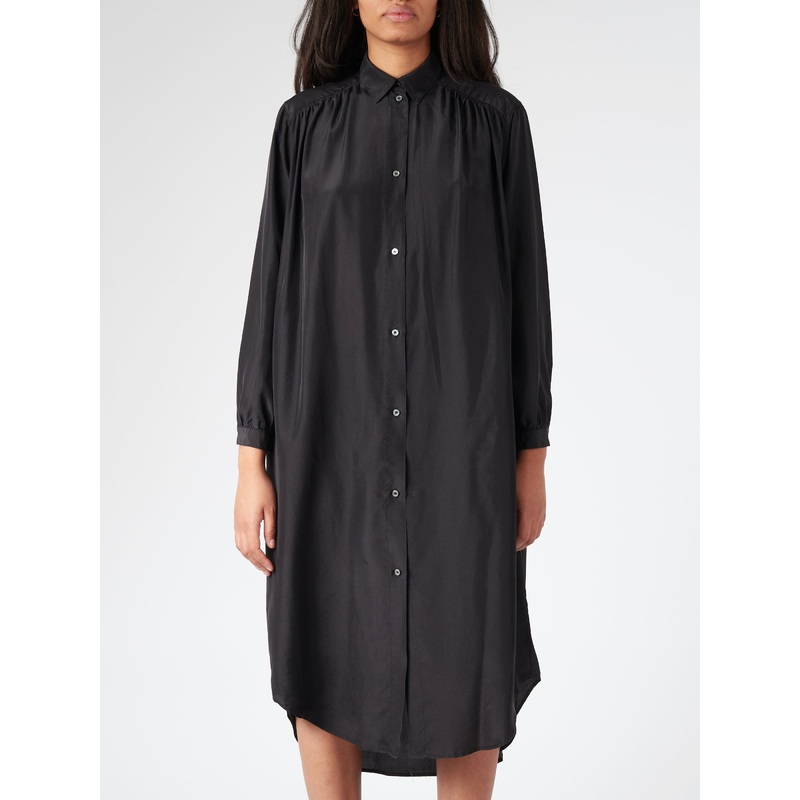Habutai silk garment dyed silk shirt dress with a classic collar.Point collarFront button closureGathers at the shouldersButtoned cuffsRounded hemMaterialsFabric Content: 100% silkSize GuideJade wears size IT 40. She is 5'9"; bust 33"; waist 27"; hips 41"F