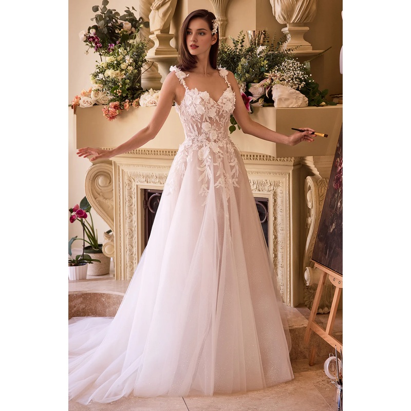 Be the first to review “3D floral decal long sleeveless sweetheart wedding dress”