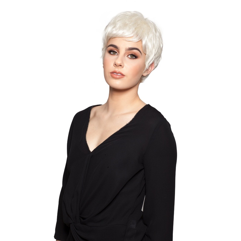 Soft bangs with medium layers and a tapered back for a stylish lookSynthetic Hair Fiber: Pre-styled, ready-to-wear, designed to look and feel like natural hair.SpecificationsCap SizeAverageCap ConstructionMachine TiedLength (approx)Front 3", Side 3", Nape