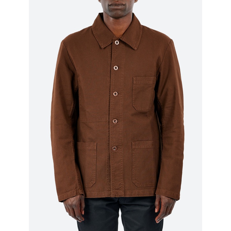 A classic French workwear jacket made from organic cotton dungaree twill. This fabric is made of two-ply warp yarns (two yarns twisted together), ensuring better resistance.