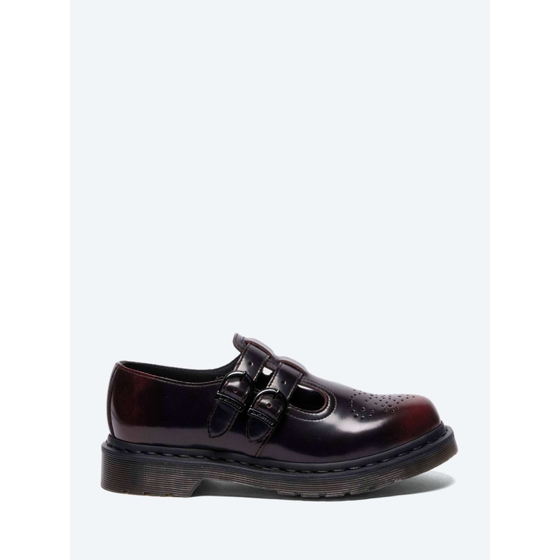 The 8065 Mary Jane shoe gets an experimental update in leather that evolves over time. Tough and high-shine, Arcadia leather is two-tone by nature, with a top coat that rubs off with wear. The silhouette stays true to classic Mary Jane features double straps, horseshoe buckles and brogue detailing on the toe while black welt stitching and a smoke DMS outsole with classic grooving complete the shoe.