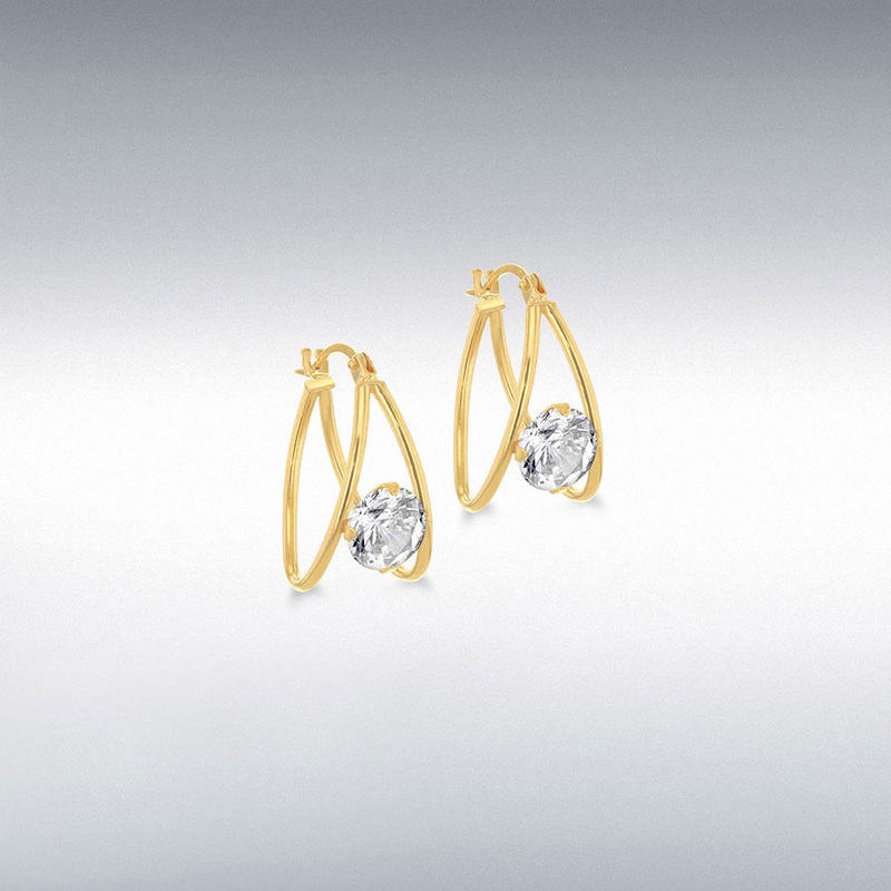 9CT GOLD DOUBLE HOOP WITH CZ EARRINGS