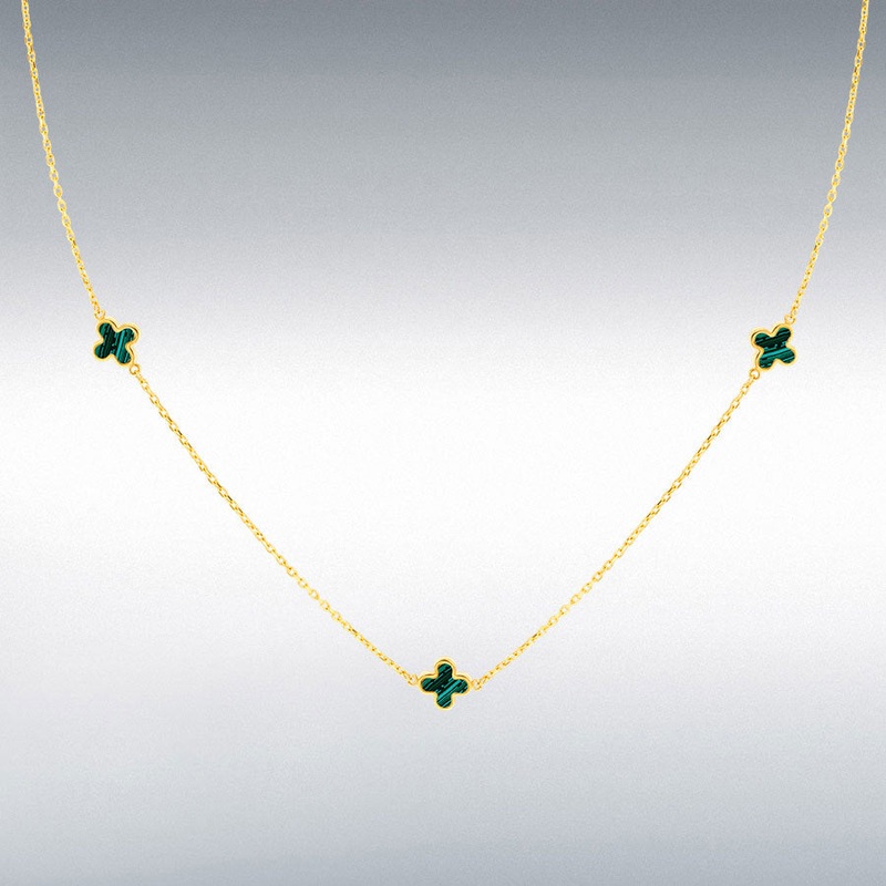 9ct Yellow Gold 3 x Malachite Clover Petals Necklace