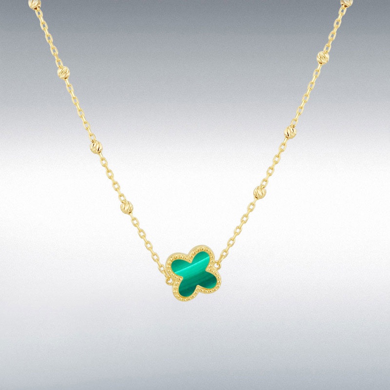 9ct Yellow Gold Malachite Clover DC Ball Necklet