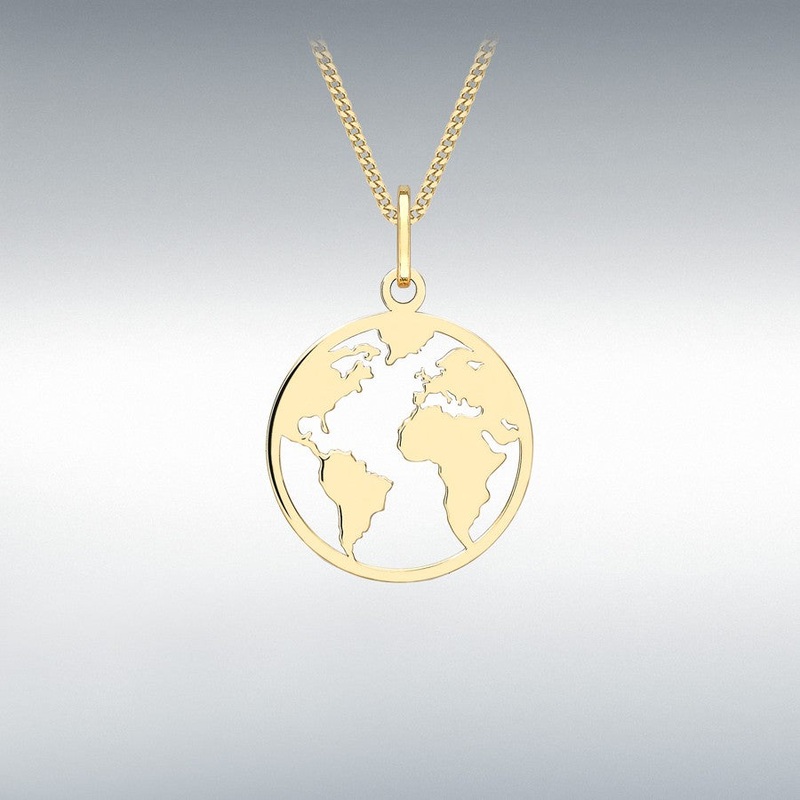 9ct Yellow Gold Map Of The World Disc Pendant