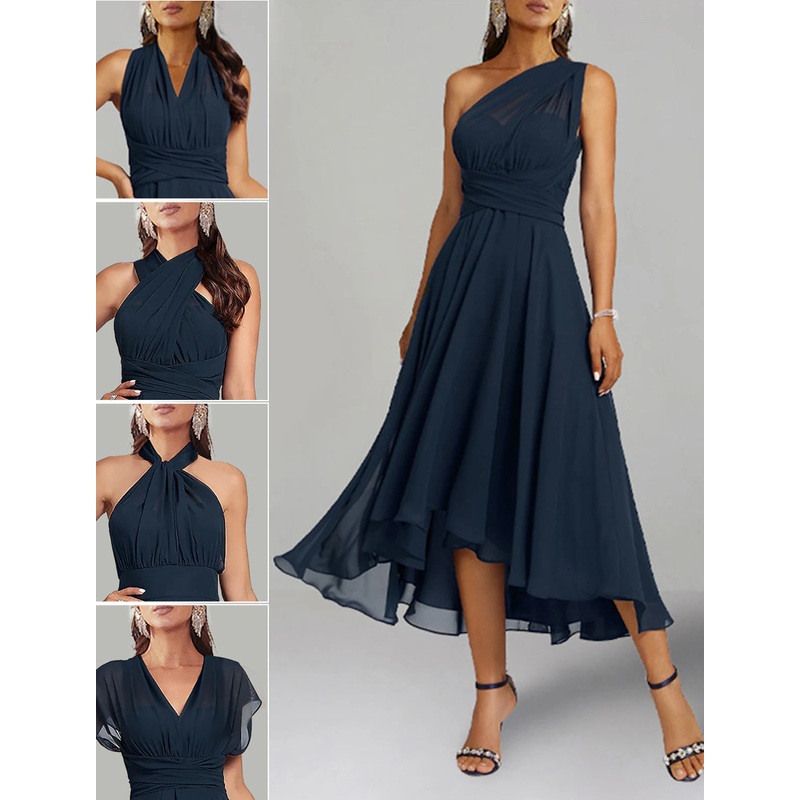 Be the first to review “A-Line Blue Wedding Guest Dresses Convertible Infinity Mother Dress Formal Tea Length Sleeveless One Shoulder Chiffon with Ruched”
