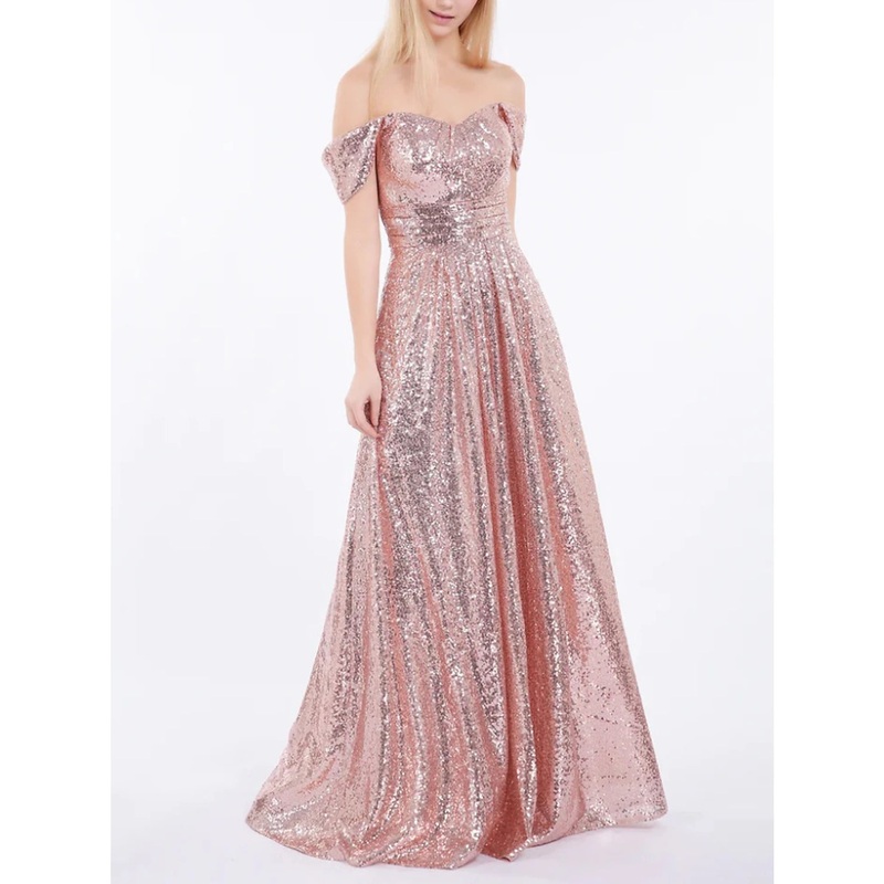 Be the first to review “A-Line Bridesmaid Dress Off Shoulder Short Sleeve Elegant Floor Length Sequined with Ruching”