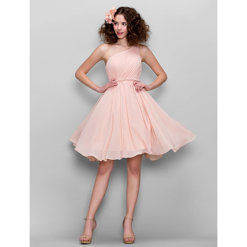 A-Line Bridesmaid Dress One Shoulder Sleeveless All Celebrity Styles Knee Length Chiffon with Side Draping