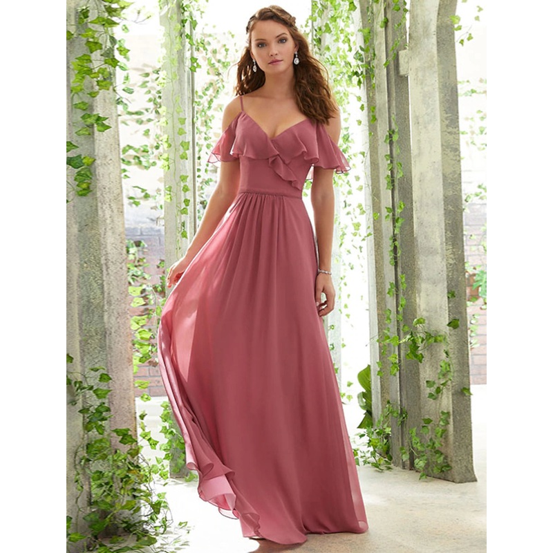 A-Line Bridesmaid Dress Spaghetti Strap Short Sleeve Open Back Floor Length Chiffon with Ruffles / Ruching