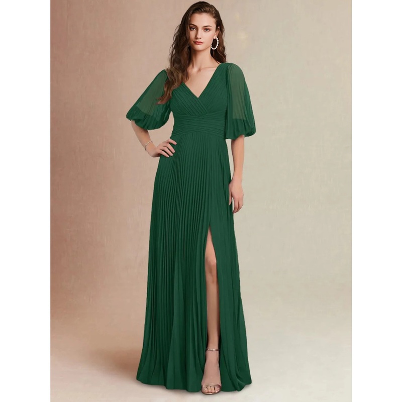 Be the first to review “A-Line Bridesmaid Dress V Neck Half Sleeve Elegant Floor Length Chiffon with Split Front / Ruching”