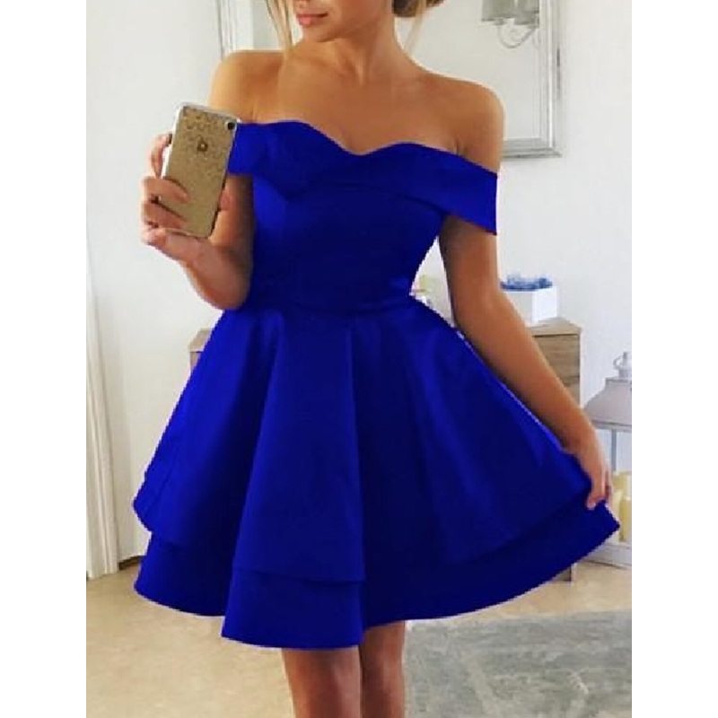 Be the first to review “A-Line Cocktail Dresses Elegant Dress Homecoming Graduation Short / Mini Sleeveless Off Shoulder Satin with Draping” Cancel reply