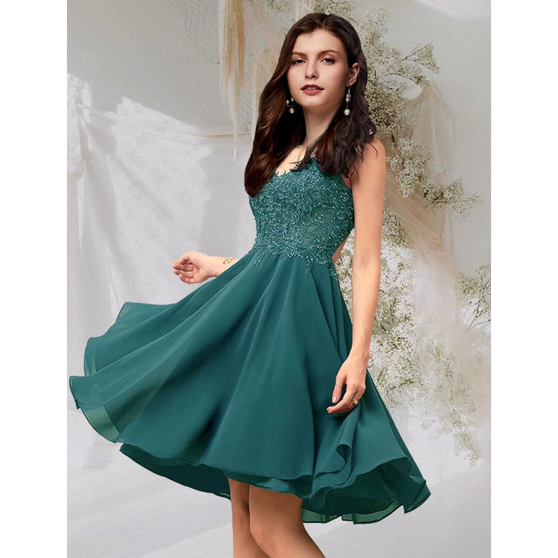 Be the first to review “A-Line Cocktail Dresses Elegant Dress Homecoming Graduation Short / Mini Sleeveless V Neck Chiffon Backless with Beading Lace Insert” Cancel reply
