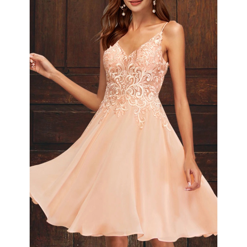 A-Line Cocktail Dresses Elegant Dress Homecoming Graduation Short / Mini Sleeveless V Neck Pink Dress Tulle with Appliques