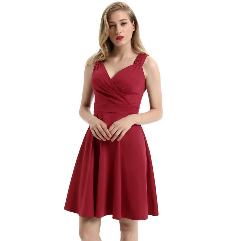A-Line Cocktail Dresses Elegant Dress Party Wear Cocktail Party Tea Length Sleeveless V Neck Spandex with Pleats
