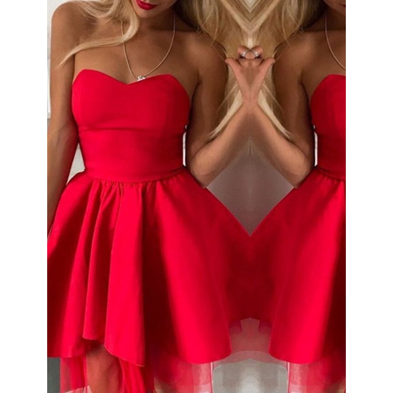 Be the first to review “A-Line Cocktail Dresses Minimalist Dress Homecoming Graduation Short / Mini Sleeveless Strapless Satin with Pleats”