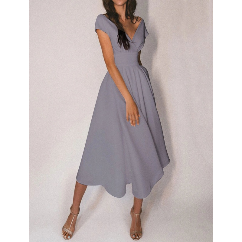 A-Line Cocktail Dresses Party Dress Homecoming Wedding Guest Tea Length Short Sleeve Off Shoulder Fabric with Sleek Pure Color 2025