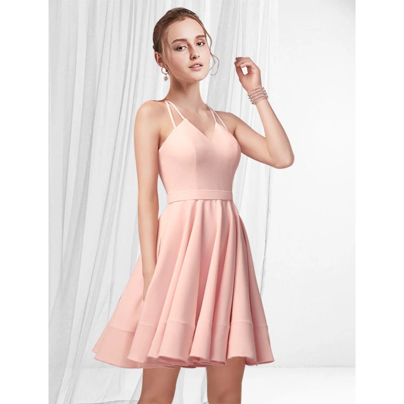 A-Line Cocktail Dresses Reformation Amante Dress Homecoming Party Wear Short / Mini Sleeveless Spaghetti Strap Pink Dress Satin with Pleats