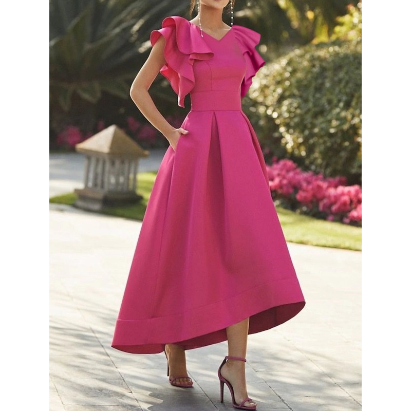 Be the first to review “A-Line Cocktail Party Dress Elegant Dress Semi Formal Asymmetrical Sleeveless V Neck Fall Wedding Guest Fabric with Ruffles” Cancel reply