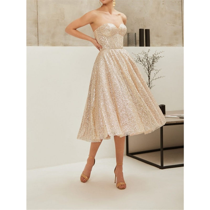 Be the first to review “A-Line Corsets Glittering Sparkle Party Wear Engagement Birthday Dress Strapless Sleeveless Knee Length Sequined with Pleats Sequin 2025”
