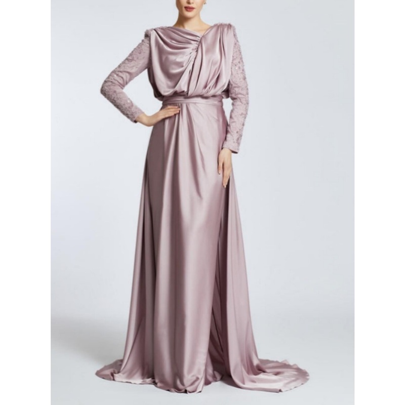 Be the first to review “A-Line Evening Gown Black Dress Plus Size Elegant Dress Formal Sweep / Brush Train Long Sleeve Jewel Neck Satin with Pleats Sequin”