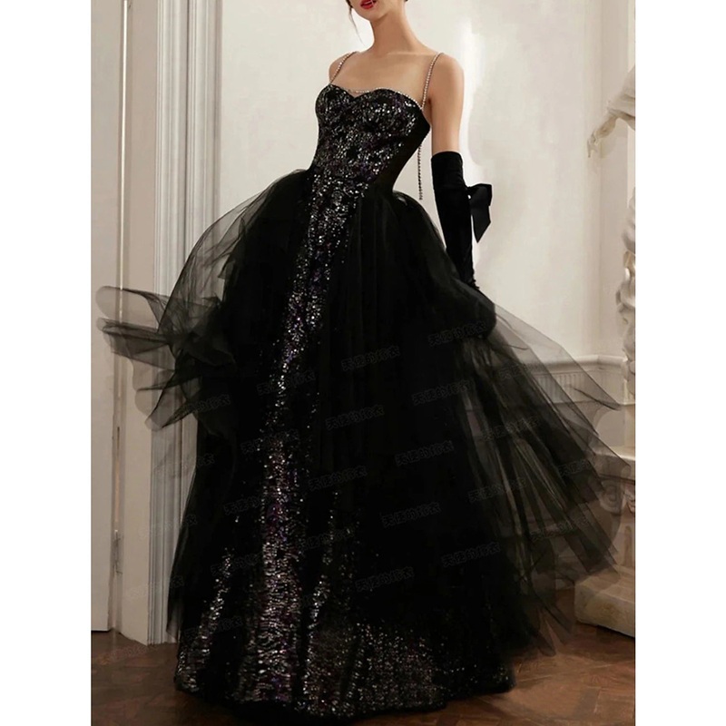 Be the first to review “A-Line Evening Gown Black Dress Sparkle & Shine Dress Prom photoshoot Floor Length Sleeveless Strapless Sequined with Sequin”