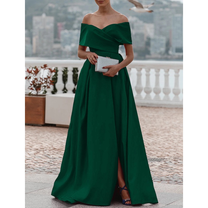 Be the first to review “A-Line Evening Gown Christmas Red Green Dress Celebrity Style Dress Formal Wedding Court Train Sleeveless Off Shoulder Bridesmaid Dress Satin with Ruched Slit 2025”