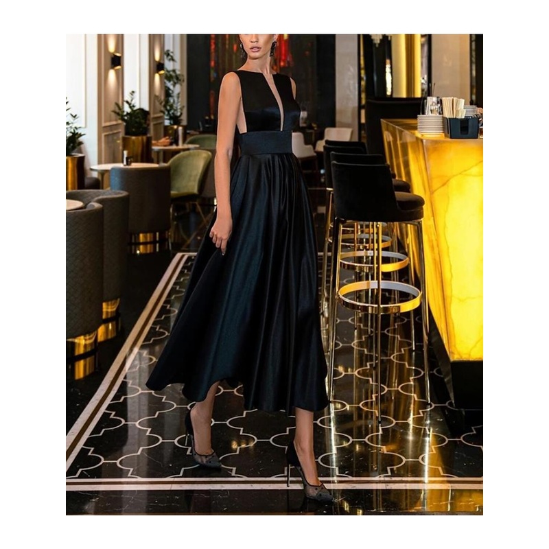 A-Line Evening Gown Cut Out Dress Engagement Wedding Party Sweep / Brush Train Sleeveless Jewel Neck Italy Satin Backless with Sleek Pure Color