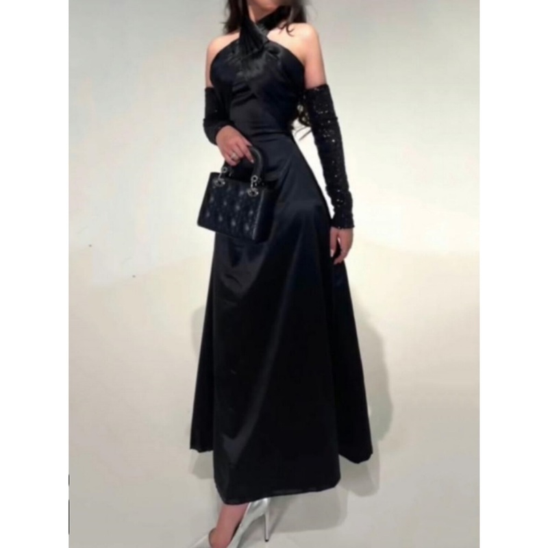 Be the first to review “A-Line Evening Gown Elegant Dress Formal Ankle Length Black Dress Sleeveless Halter Neck Satin with Pleats Ruched” Cancel reply