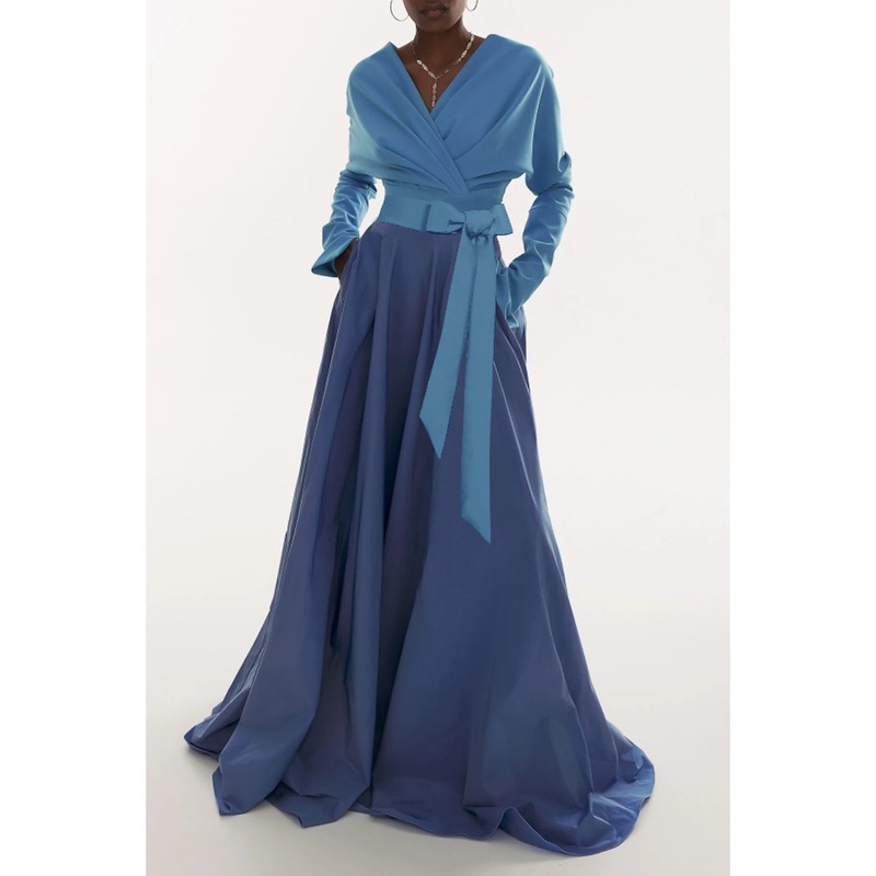 A-Line Evening Gown Elegant Dress Formal Fall Sweep / Brush Train Long Sleeve V Neck Fabric with Pleats Ruched