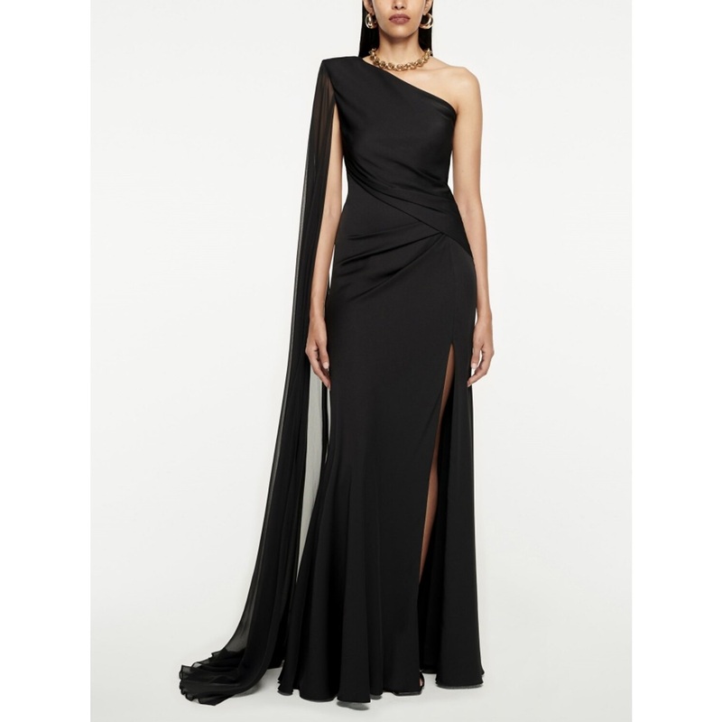 Be the first to review “A-Line Evening Gown Elegant Dress Formal Sweep / Brush Train Black Dress Sleeveless One Shoulder Imitation Silk with Pleats Ruched Slit” Cancel reply
