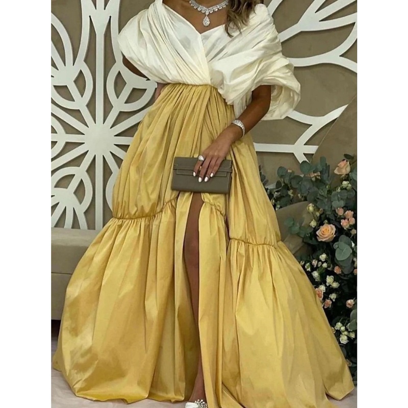 Be the first to review “A-Line Evening Gown Elegant Dress Formal Sweep / Brush Train Formal Red Green Dress Half Sleeve Off Shoulder Satin with Pleats Slit” Cancel reply