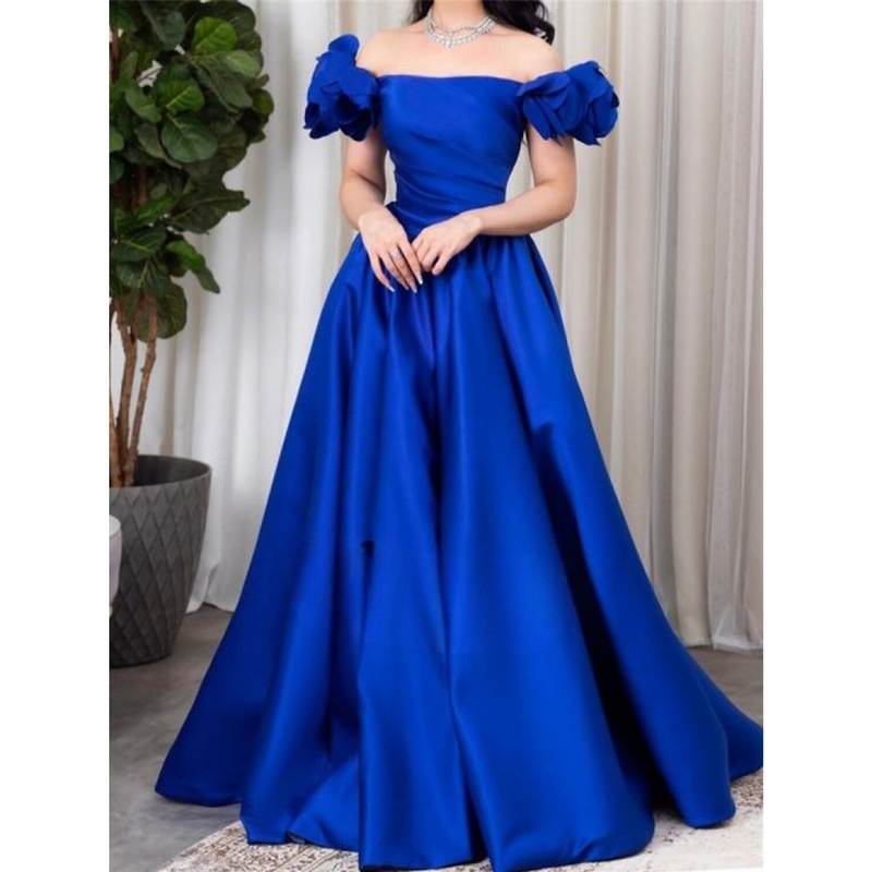 Be the first to review “A-Line Evening Gown Elegant Dress Formal Sweep / Brush Train Short Sleeve Off Shoulder Satin with Pleats Ruched”