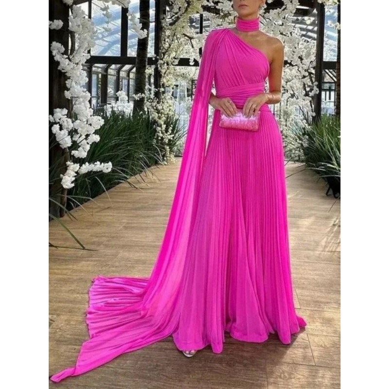 Be the first to review “A-Line Evening Gown Elegant Dress Formal Sweep / Brush Train Sleeveless One Shoulder Chiffon with Pleats Ruched”