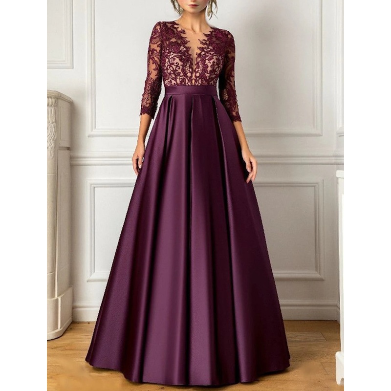 Be the first to review “A-Line Evening Gown Elegant Dress Formal Wedding Guest Floor Length 3/4 Length Sleeve V Neck Satin with Pleats Sequin” Cancel reply